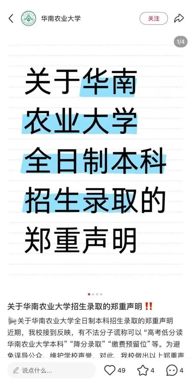 《关于华南农业大学招生录取的郑重声明》